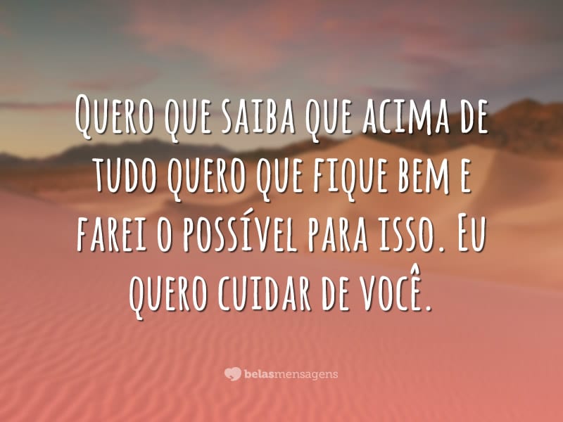 Quero que saiba que acima de tudo quero que fique bem e farei o possível para isso. Eu quero cuidar de você.