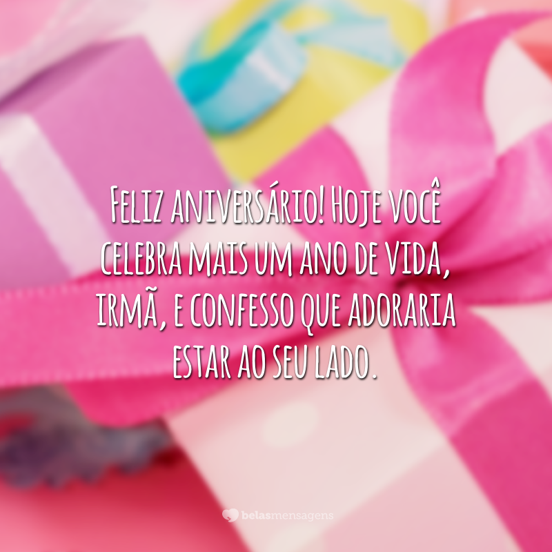 Feliz aniversário! Hoje você celebra mais um ano de vida, irmã, e confesso que adoraria estar ao seu lado.