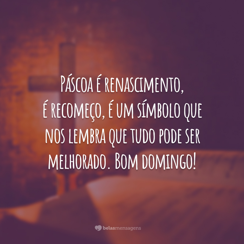 Páscoa é renascimento, é recomeço, é um símbolo que nos lembra que tudo pode ser melhorado. Bom domingo!