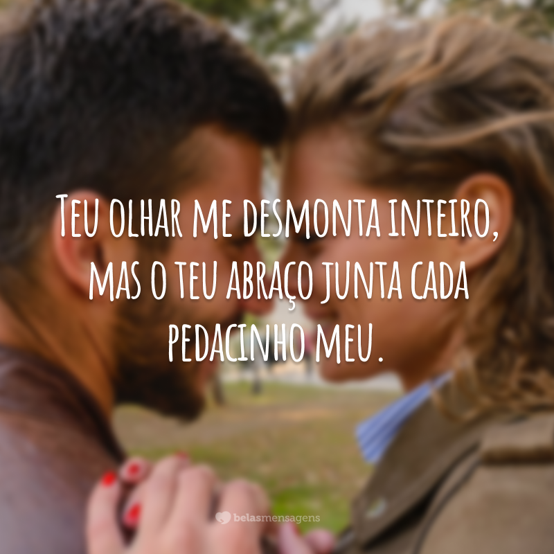 Teu olhar me desmonta inteiro, mas o teu abraço junta cada pedacinho meu.