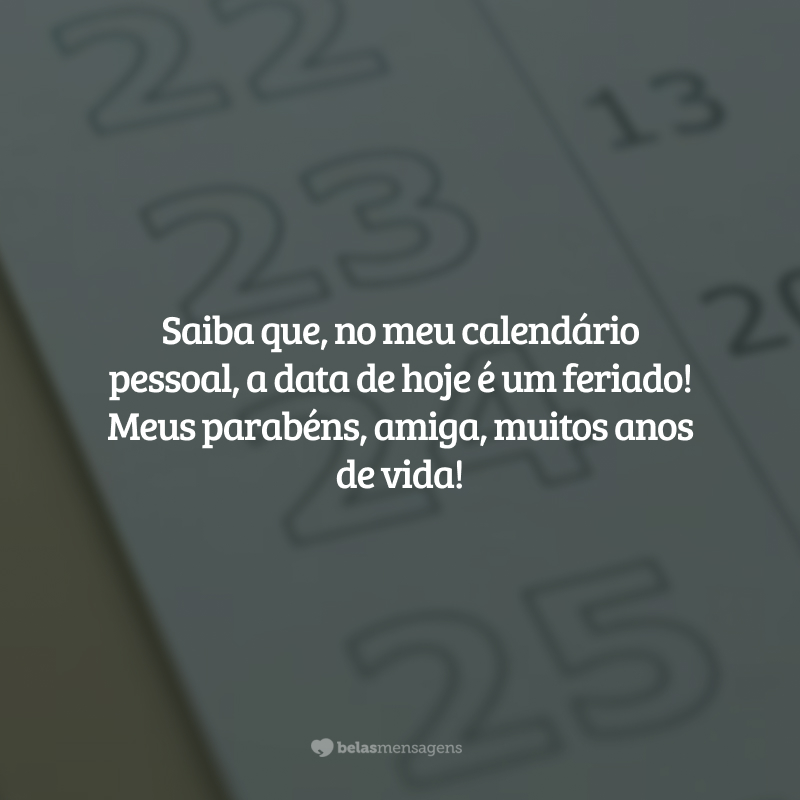 Hoje é dia de celebrar ao lado de quem mais amamos, afinal de contas, é o seu aniversário, minha amiga! Aproveite cada minuto com muita intensidade.