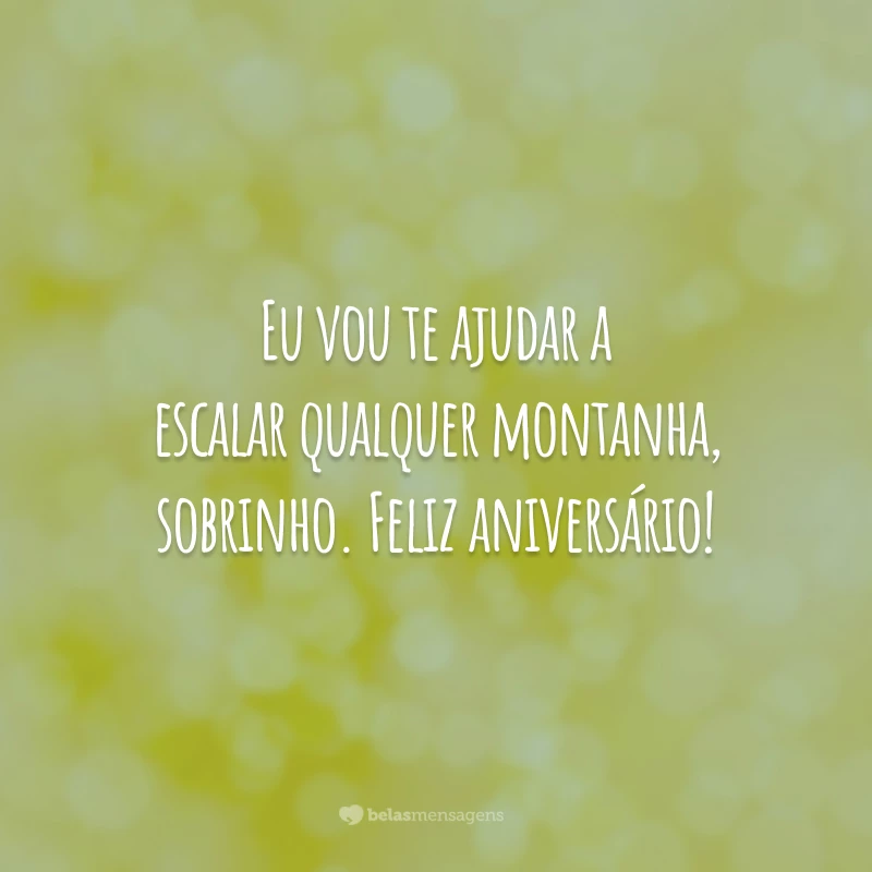 Eu vou te ajudar a escalar qualquer montanha, sobrinho. Feliz aniversário!