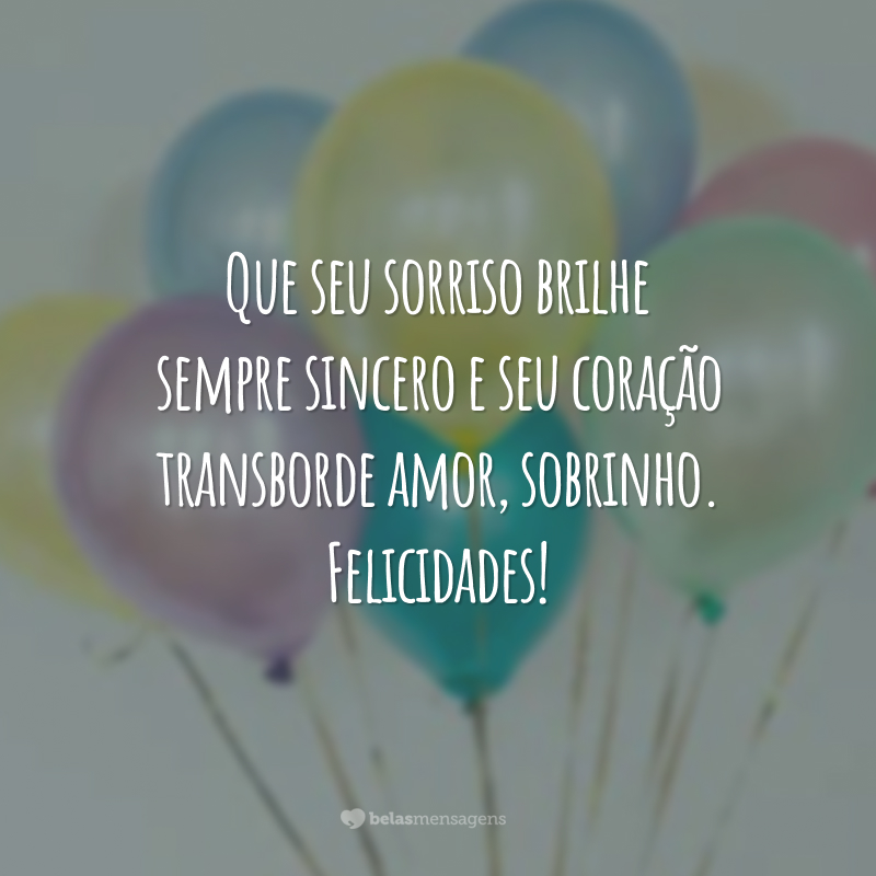 Que seu sorriso brilhe sempre sincero e seu coração transborde amor, sobrinho. Felicidades!