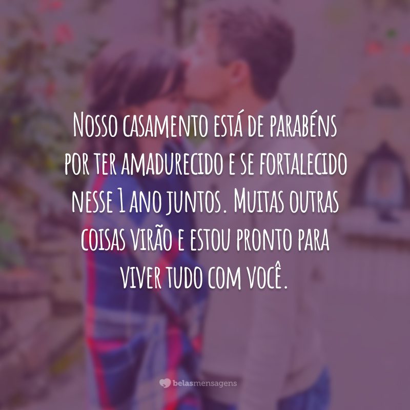 Nosso casamento está de parabéns por ter amadurecido e se fortalecido nesse 1 ano juntos. Muitas outras coisas virão e estou pronto para viver tudo com você.