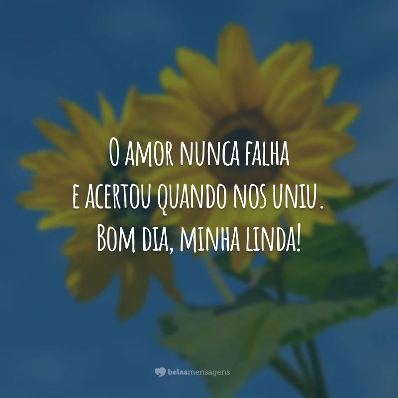 O amor nunca falha e acertou quando nos uniu. Bom dia, minha linda!