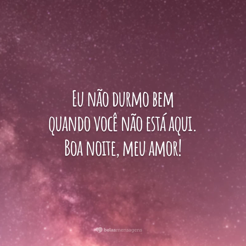 Eu não durmo bem quando você não está aqui. Boa noite, meu amor!