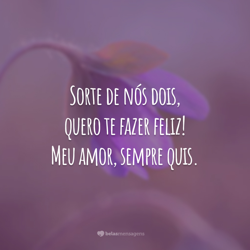 Sorte de nós dois, quero te fazer feliz! Meu amor, sempre quis.