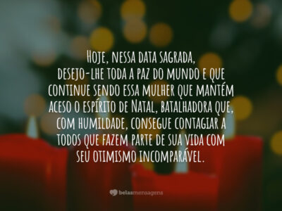 Minha madrinha adorada, mulher divina – que me acompanha desde os meus primeiros anos de vida -, no Batismo, já era claro todo o carinho que tinha por mim. Hoje, nessa data sagrada, desejo-lhe toda a paz do mundo e que continue sendo essa mulher que mantém aceso o espírito de Natal, batalhadora que, com…