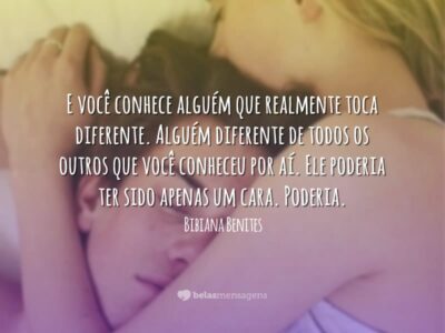 Você despertou as coisas mais bonitas que existiam em mim, que eu nem sabia que tinha. Você colocou brilho em meus olhos e paz no meu coração. Você é a única pessoa que sabe decifrar meu olhar. E só você consegue fazer isso. Tudo isso. Só você consegue me deixar sem palavras, sem forças, com…